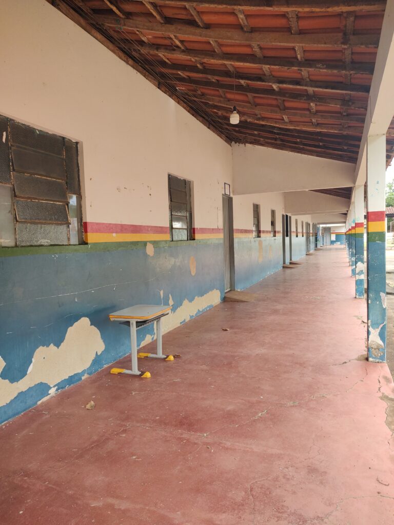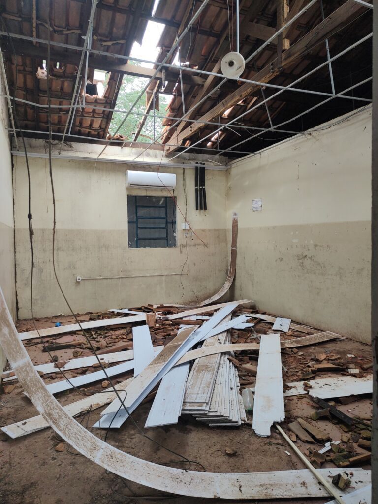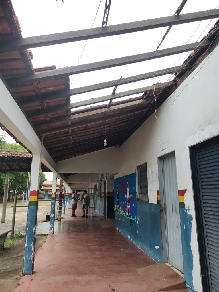 Entre os problemas identificados estavam as condições precárias do telhado, falhas nos sistemas hidráulico e elétrico, infiltrações, além de outras situações estruturais que se arrastavam há anos e comprometiam o funcionamento adequado da escola.
