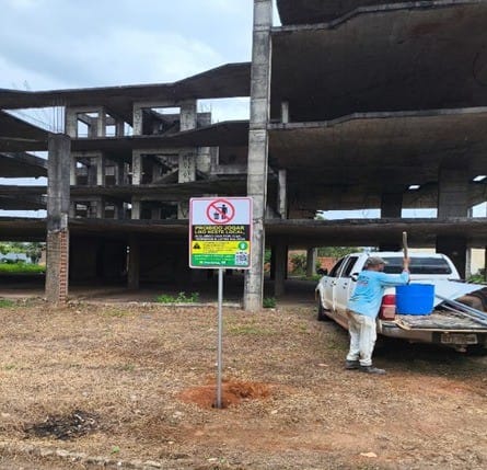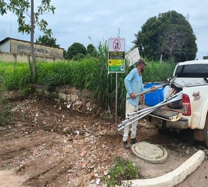 Além dos equipamentos, também foram instaladas placas educativas em áreas públicas com orientações e alertas sobre a proibição do descarte irregular. O descumprimento das regras está sujeito à aplicação de multa, conforme estabelece a Lei Municipal nº 002/2003.